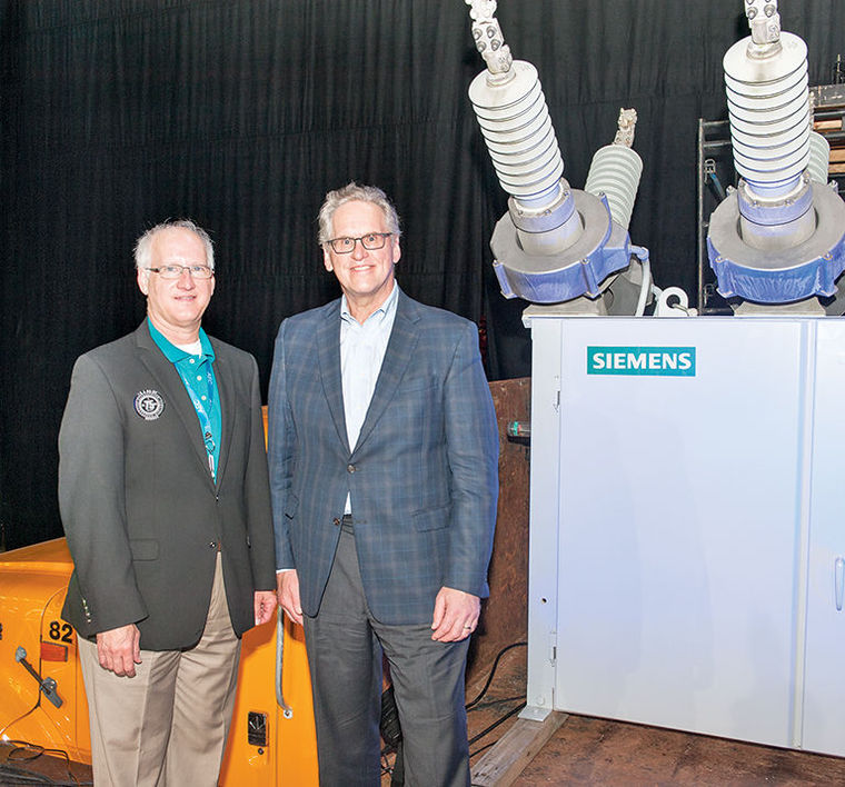 AEC General Manager Greg Williams welcomes TVA President & CEO Bill Johnson to the Cooperative’s 75th annual meeting last Saturday. Members in attendance were the first to hear about an innovative new subscription-based community solar project to be constructed as part of a partnership effort between the Co-op and TVA. ~ Photo by Dale Gentry, Standard Banner